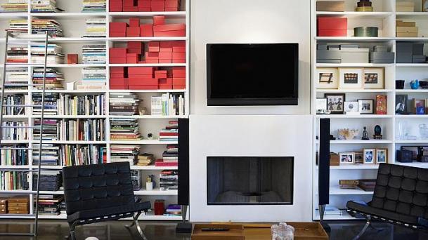 This apartment with nice shades of blue and a beautiful bathroom will help you to relax after work.